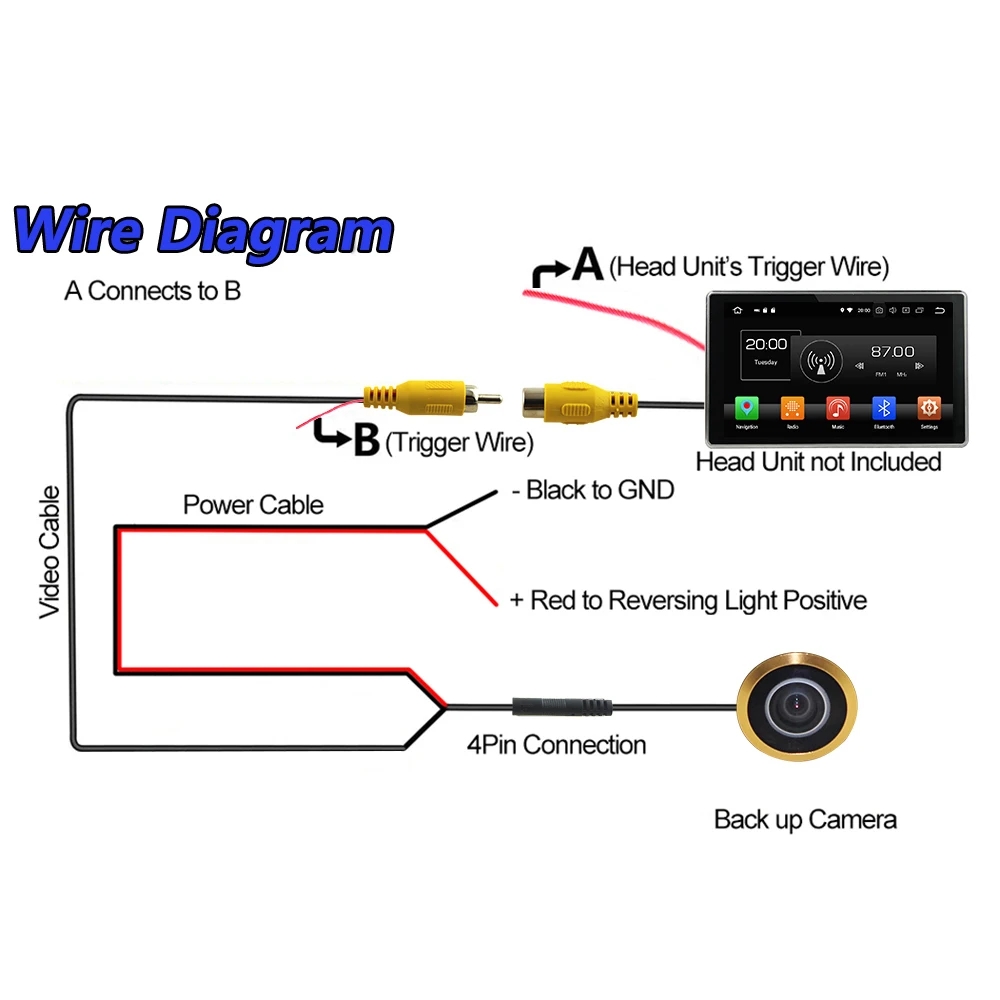 Start by identifying the power source for the camera, typically the reverse light or a separate power supply. Then, connect the power and ground wires from the camera to the designated ports on the display unit. Make sure to follow the color-coding on the wiring diagram for accurate connections.