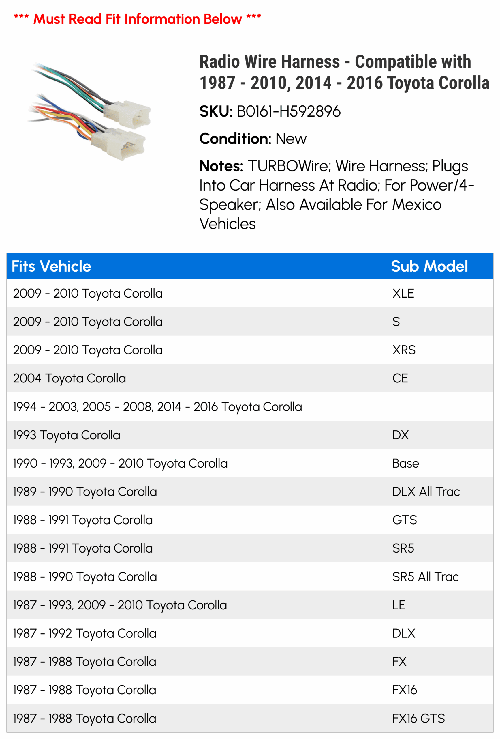 So, before you start your radio installation project, be sure to locate the Toyota Corolla Radio Wiring Diagram. It will be a valuable tool in helping you complete the job successfully and without any unnecessary complications.